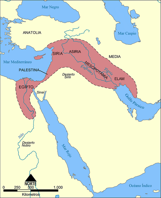 Tigre e do Eufrates, através de Fenícia na costa oriental do Mediterrâneo até